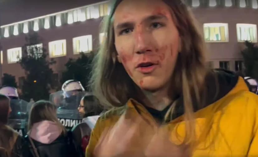 Student PMF-a u Novom Sadu Vukašin Đinović povređen je danas ispred Banovine, kada ga je policijski službenik udario štitom u glavu tokom potiskivanja građana koji su mirno pokušavali da spreče odvoženje autobusa Milomira Jaćimovića. Đinović je zadobio krvarenje iz nosa i vidljive povrede lica.